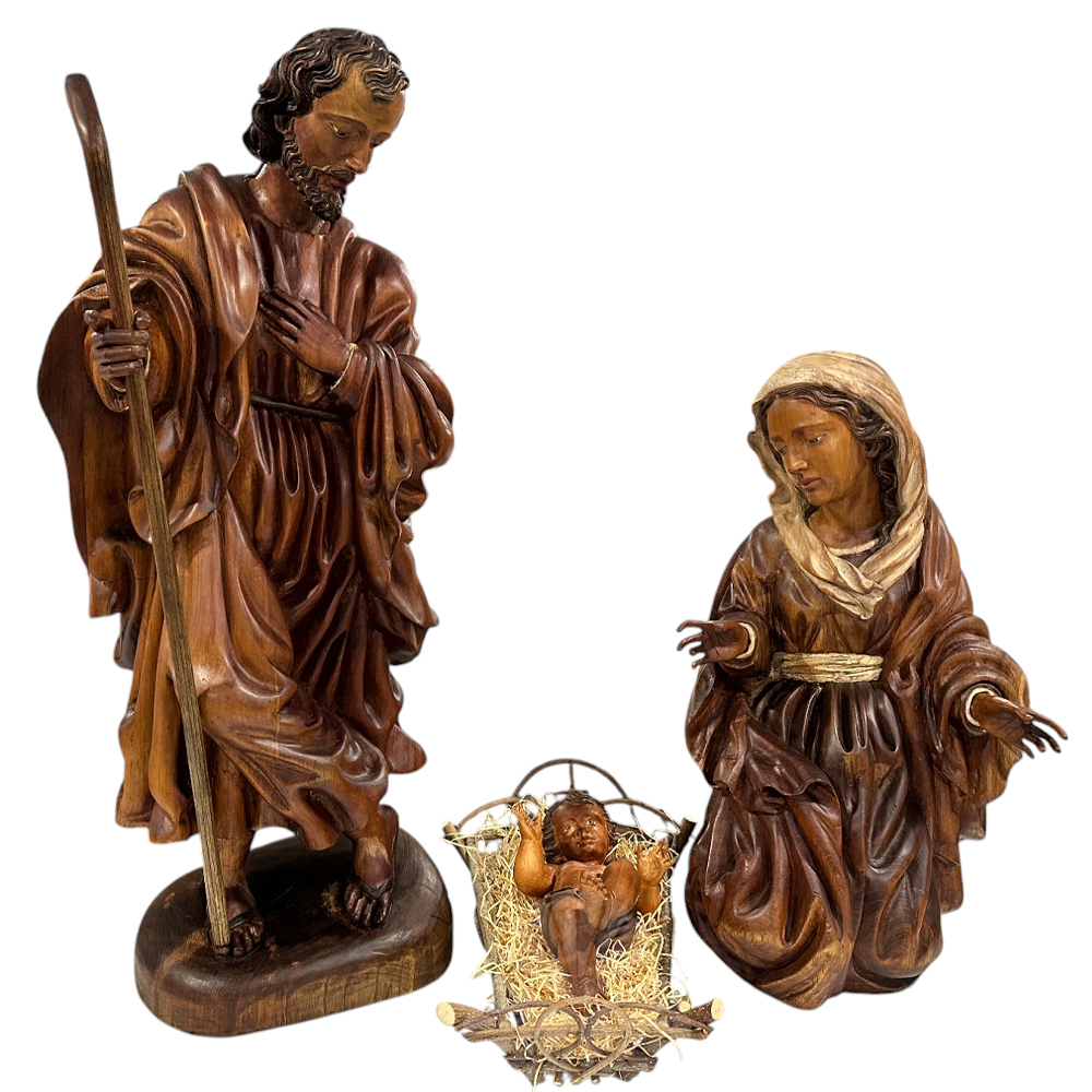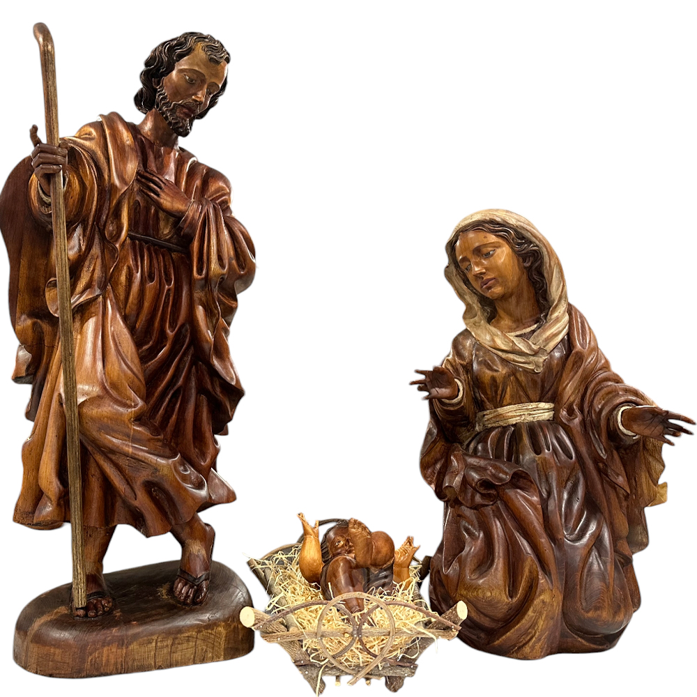 Nacimiento tallado en madera de cedro encerada.