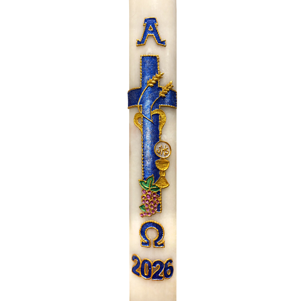 CIRIO PASCUAL 2026 DECORADO CRUZ AZUL ESPIGAS