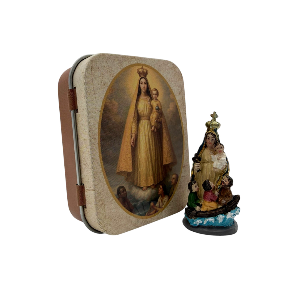 VIRGEN DE LA CARIDAD DEL COBRE 5 CM EN CAJA DE METAL