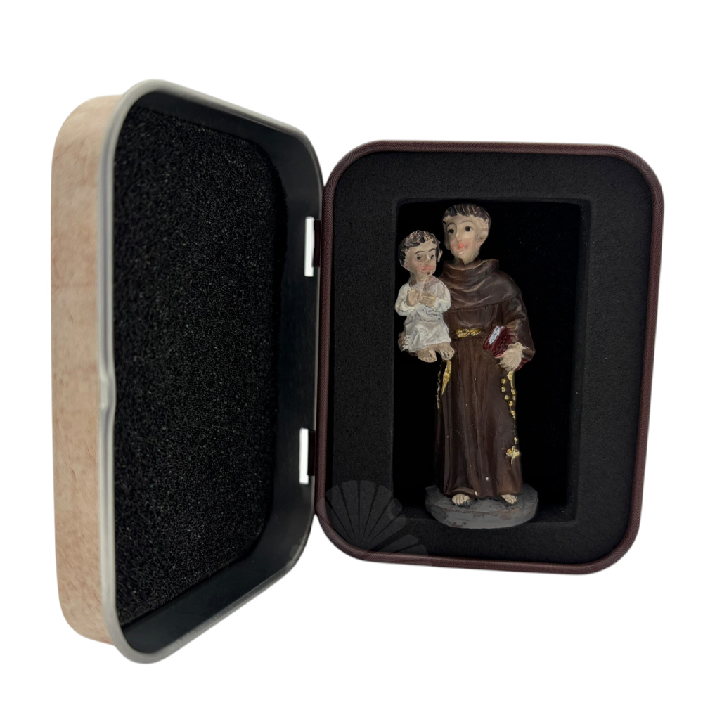 SAN ANTONIO CON NIÑO 5 CM EN CAJA DE METAL