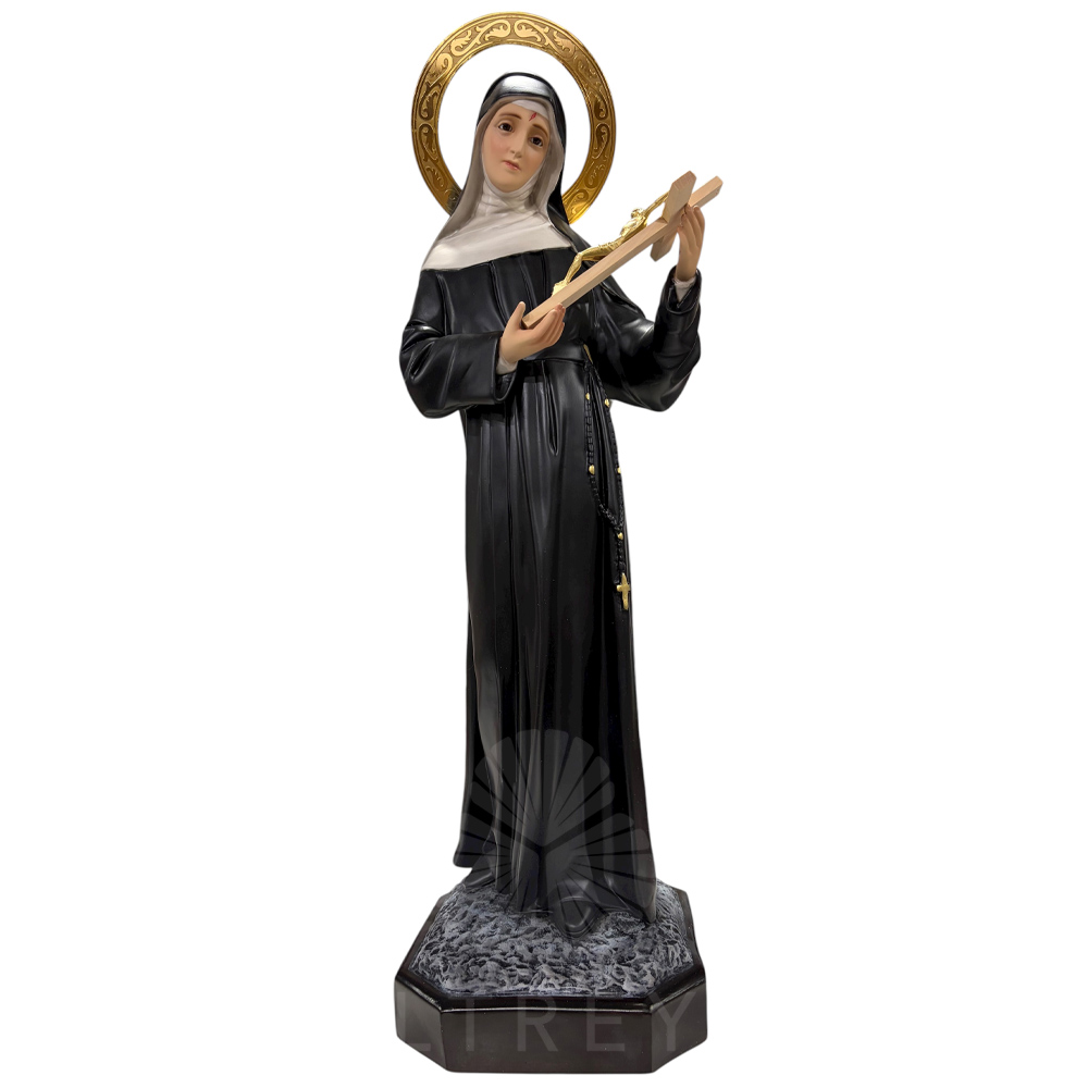 Imagen de Santa Rita fabricada en resina de poliéster con ojos de cristal.