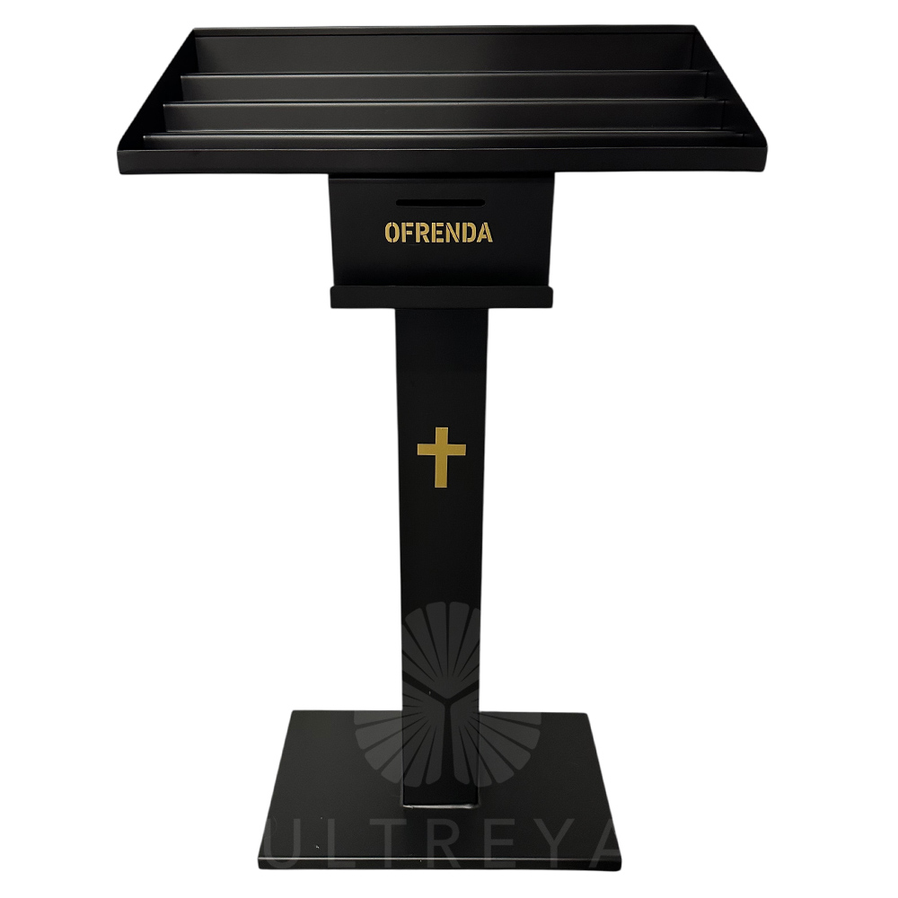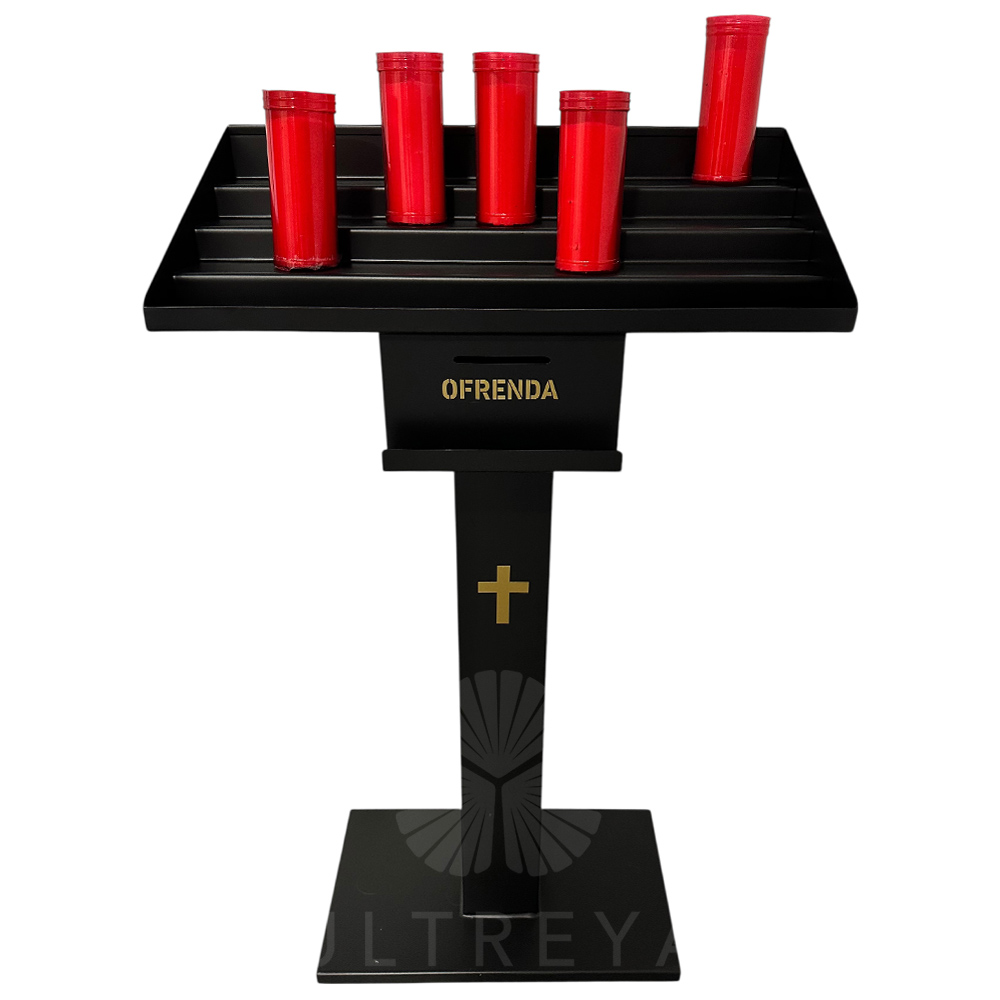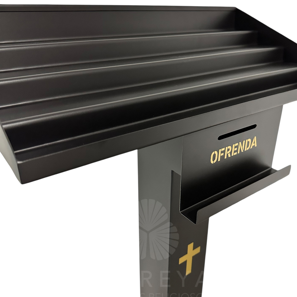 El monedero cuenta con apertura trasera incorporando bandeja para recoger ofrenda.