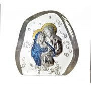 Pisapapeles de cristal con placa de plata bilaminada en relieve bicolor con la imagen de la Sagrada Familia.