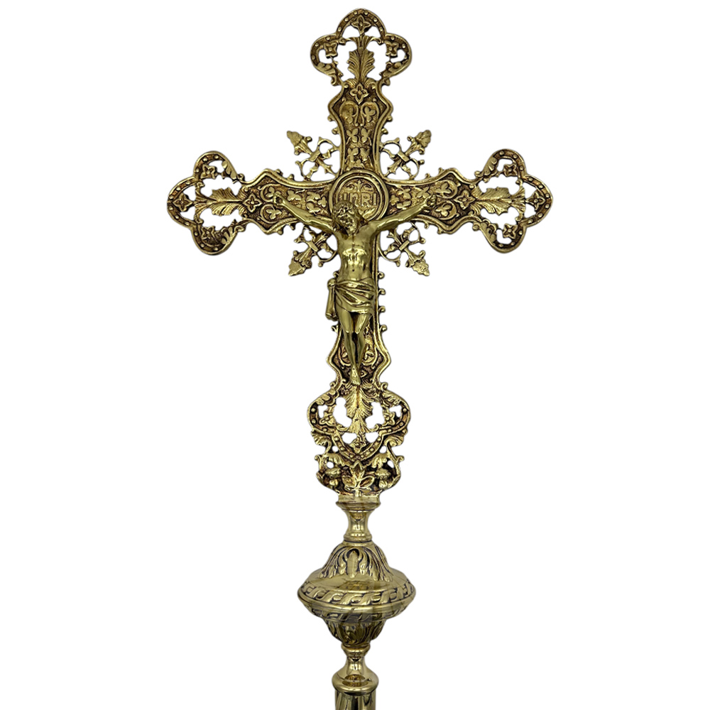Cruz parroquial o procesional realizada en fundición de bronce.