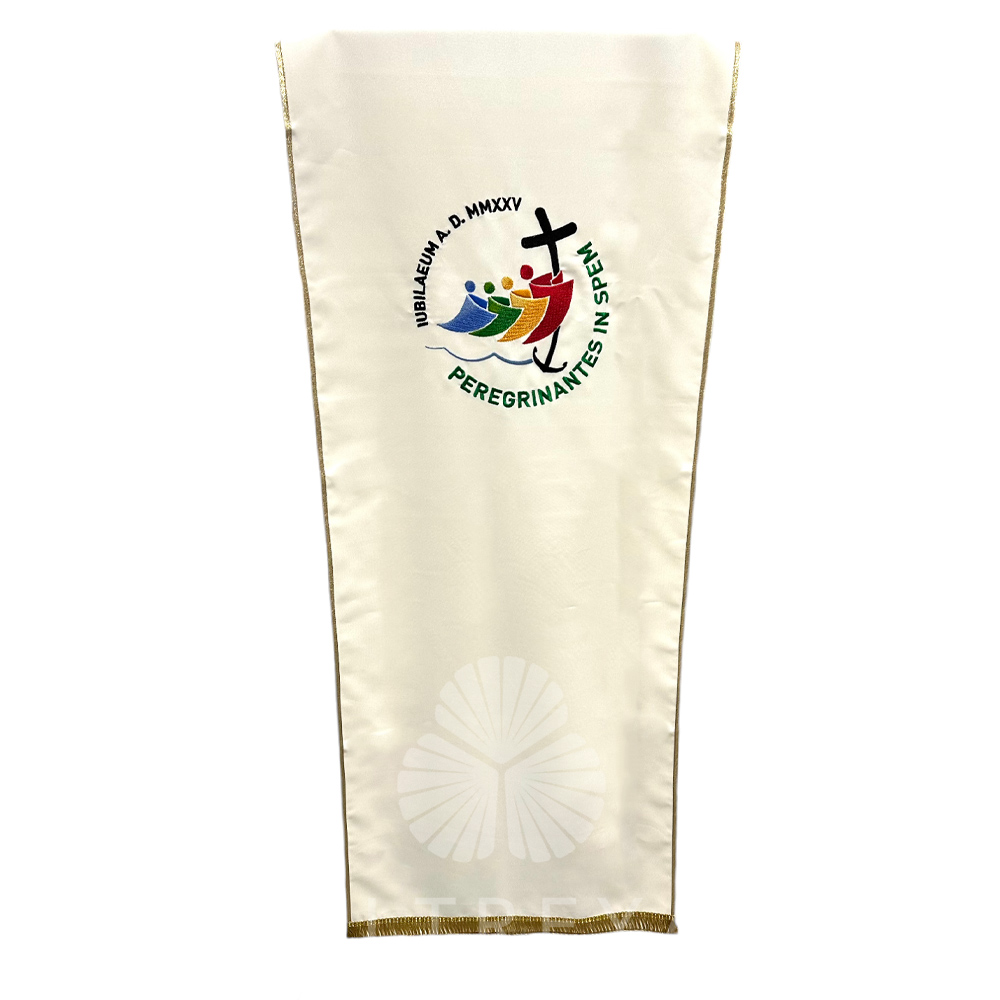 Paño de atril o paño de ambon bordado con logotipo oficial del Jubileo 2025. Realizado en 100% poliéster.
