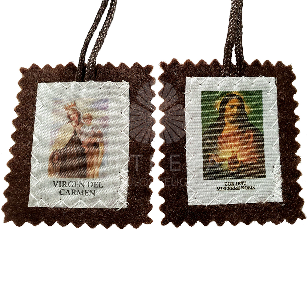 Escapulario de la Virgen del Carmen y el Sagrado Corazón de Jesús.
