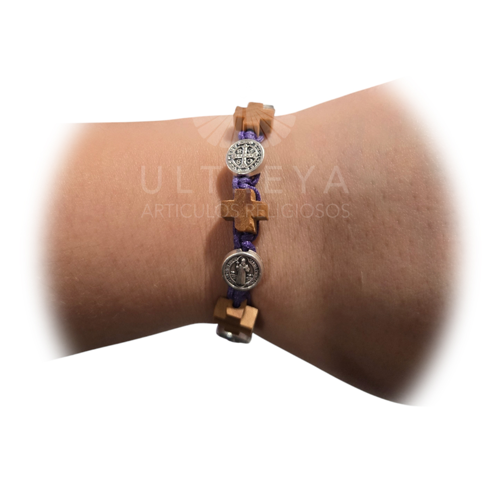 PULSERA MADERA DE OLIVO CRUCES