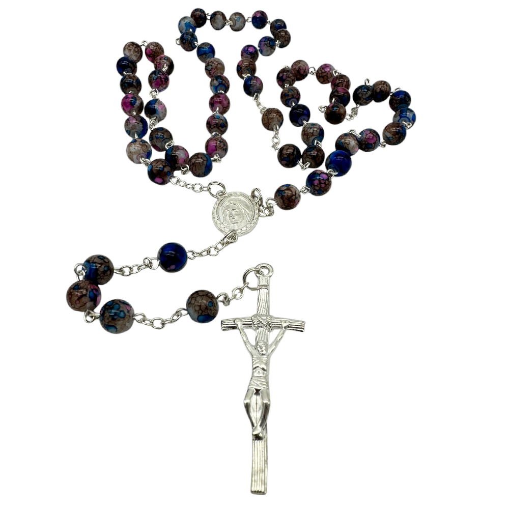 Rosario con cuentas de vidrio de 8 mm.