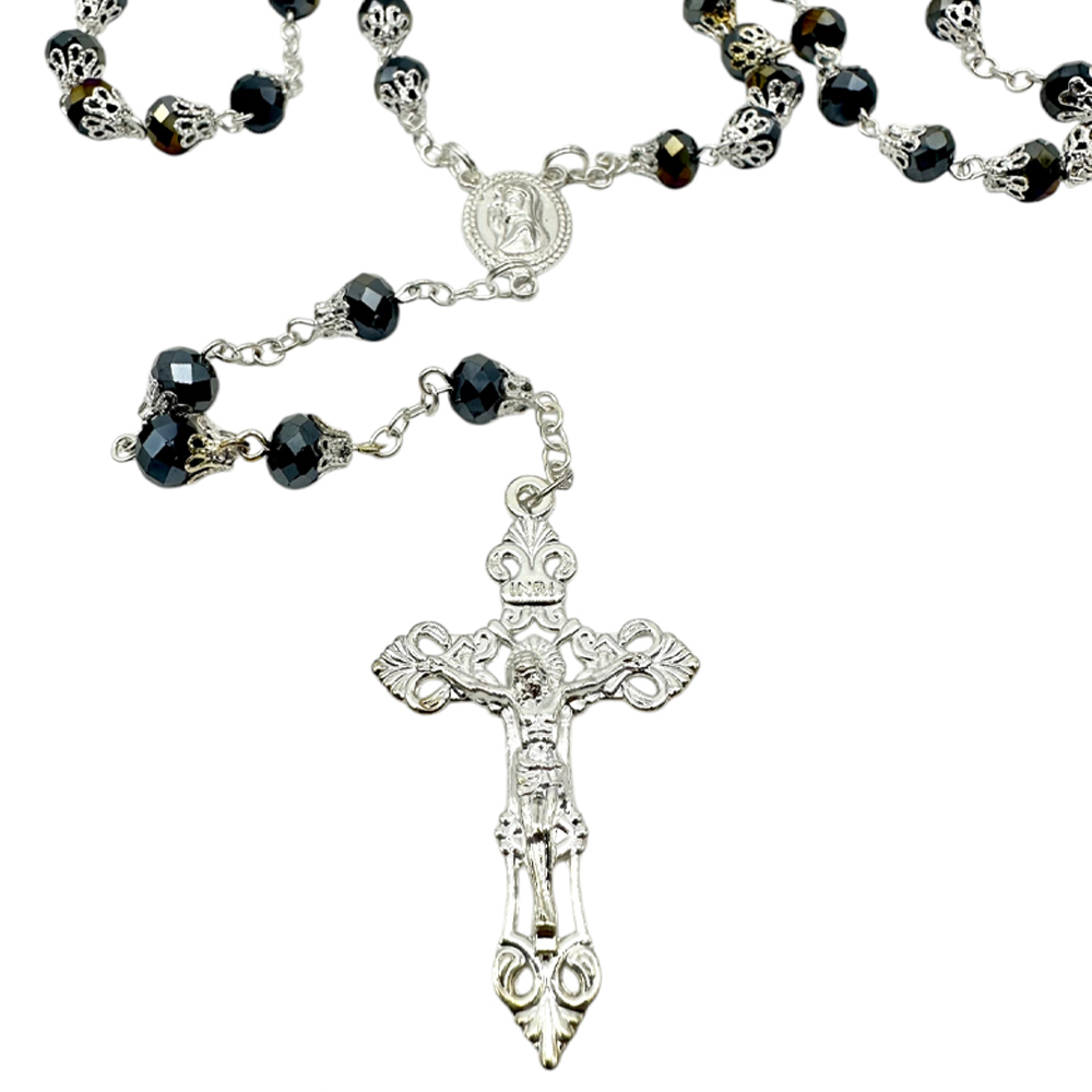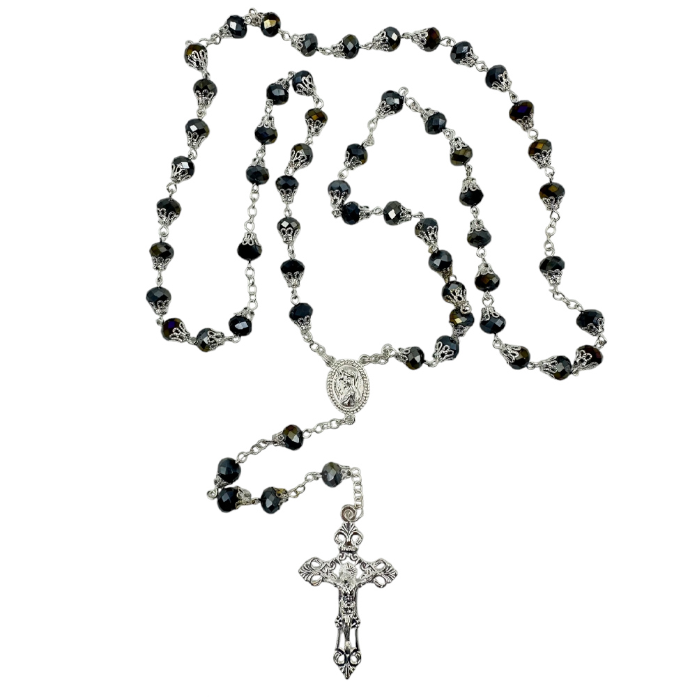 Rosario con cuentas de vidrio facetadas de 8 mm.